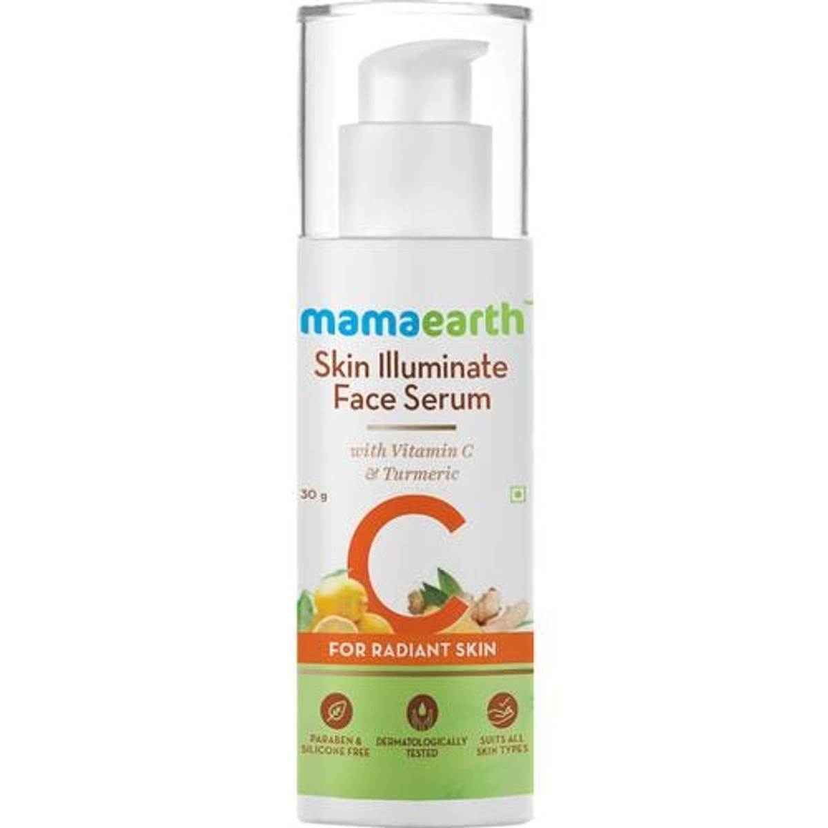 Description: Illuminate your skin with Mamaearth's Skin Illuminate Face Serum. Infused with the brightening power of vitamin C and turmeric, this serum enhances your skin's natural radiance and evens out skin tone. Experience a glowing complexion with the nourishing benefits of natural ingredients in a 30 gm bottle.