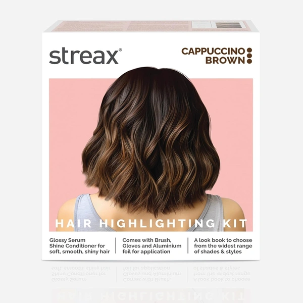 The Streax Hair Colour Highlight Kit in Cappuccino Brown provides a sophisticated and warm brown hue, perfect for adding rich, vibrant highlights to your hair. This kit is designed to deliver professional-quality results with a nourishing formula for a healthy shine.