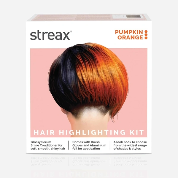 The Streax Hair Colour Highlight Kit in Pumpkin Orange is perfect for those who want to stand out with a vibrant, fiery color that also nourishes and protects their hair.